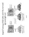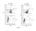 In bone marrow, B progenitor populations are characterized based their surface markers, B220 and CD43. PreProB cells carry germline IGH and IGK/L configuration and have low B220 and high CD43 on their cell surface. ProB cells start to initiate VDJ recombination in the IGH locus and carry medium levels of both B220 and CD43. PreB cells carry rearranged IGH VDJ locus and start to initiate light chain VJ rearrangement, and have high B220 but low CD43. In spleen, B cells are characterized as immature (T1 and T2) and mature (M) based on the levels of cell surface markers, IgM and IgD. T1 cells have high IgM and low IgD. T2 cells have medium levels of both them. M cells have low IgM but high IgD (FIG. 65). See also J Exp Med. 1991 May 1; 173(5):1213-25; “Resolution and characterization of pro-B and pre-pro-B cell stages in normal mouse bone marrow”; Hardy R R et al and J Exp Med. 1999 Jul. 5; 190(1):75-89; “B cell development in the spleen takes place in discrete steps and is determined by the quality of B cell receptor-derived signals”; Loder F et al.