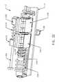 FIG. 21 is a bottom of the biopsy device ofFIG. 18 in cross section with both the cutter carriage and straw carriage retracted;