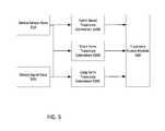 FIG. 5 depicts a block diagram of a joint fusion system500, used for fusing gathered device data with previously obtained indoor space calibration data to derive a location of a device within the indoor space. Depicted aresensor data module510 andsignal data module520, each of which can be implemented as a software module or an application running on a conventional or modern processor. Further depicted aretrajectory estimation modules550A-C, which receive the gathered sensor data of modules510-520 as input. A trajectory fusion module is further provided, which receives as input the estimated trajectories produced bytrajectory estimation modules550A-C, and derives a final estimated location and trajectory.