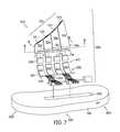 It should be noted that in some embodiments, firsthollow plate702 may match the contours offirst sidewall portion302 that it is adjacent to. Thus, asfirst sidewall portion302 of upper102 may curve upward and increase in height from aforefoot region620 toward amidfoot region622, and/or frommidfoot region622 to aheel region624, firsthollow plate702, secondhollow plate704, thirdhollow plate706, and fourthhollow plate708 may increase in height to follow the contours offirst sidewall portion302. Such a design may enhance the ability of hollow plate set700 to serve as a guide for second strap set615, as straps are routed throughfastener moving mechanism602. Variations in the curvature of the structure of the hollow plates will be discussed further below with reference toFIGS. 18-20.