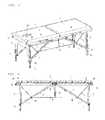 FIG. 7 is an enlarged view of the underside surface of one of the tabletop of the exemplary foldable table when the exemplary foldable table is in a partially folded configuration. InFIG. 7, the opposing supporting assemblies on thefirst tabletop1 are folded, while thefirst tabletop1 and thesecond tabletop1′ are unfolded, in a co-planar configuration. Each of the sections, thefirst tabletop1 and thesecond tabletop1′, includes aframe member28. Theframe member28 facilitates the attachment of thehinge members19 to the section including the frame member.