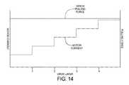 FIG. 14 is a graphical illustration of the step increased motor current limits for each drum layer in order to provide a constant pulling force; and