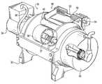 FIGS. 4 and 5 are schematic diagrams depicting anexemplary winch system30. InFIG. 5, a portion of the internal components of the winch system are depicted by depicting the outer surface of the winch components in a translucent fashion. The winch components are assembled about asupport structure32. The winch system further includes amotor system34, which in exemplary embodiments is a hydraulic motor system that includeshydraulic couplings36 for connection to a hydraulic fluid source (not shown). Although a hydraulic motor system is preferred for many winch applications, alternative motor systems, such as an electric motor system, may be employed. A braking system also may be incorporated into thehydraulic motor system34 and/or the drum.