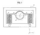 First EmbodimentFIG. 1 is a schematic view of anoscillation mirror unit10, which is an example of an actuator device of the first embodiment. In this configuration, theoscillation mirror unit10 is set with a rotation axis O as a virtual axis, and a direction parallel to the rotation axis O is the X direction, a direction perpendicular to the rotation axis O and X direction is the Y direction, and a direction perpendicular to X direction and Y direction is the Z direction.