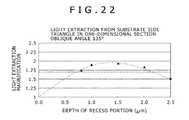 FIGS. 53 to 55, respectively, show an instance of the results of simulation of a change in efficiency of light extraction from a light-emitting diode to outside in cases where protruded and recess portions are formed on thesubstrate11 and no such portions are formed. In all cases, light extraction is performed from the back side of thesubstrate11.
