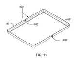FIGS. 8A & 8B depict underside, isometric views of a further embodiment of a tamper-respondent assembly employingelectronic enclosure700. Referring collectively toFIGS. 8A & 8B, in one or more implementations, tamper-respondent assembly800 includeselectronic enclosure700 which, as noted, is to enclose, at least in part, one or more electronic components or an electronic assembly to be protected.Electronic enclosure700 includes an inner main surface, and an inner sidewall surface including at least one inner-sidewall corner, such as described above in connection withFIG. 7. Further, tamper-respondent assembly800 includes a tamper-respondent electronic circuit structure which includes at least one tamper-respondent sensor mounted to and covering, at least in part, the inner surface(s) ofelectronic enclosure700. As explained further below, the tamper-respondent sensor(s) is configured so as to facilitate good contact, and good adhesion, of the sensor to the inner surfaces of the enclosure, such as, for instance, the one or more inner-sidewall corners of theelectronic enclosure700, to provide secure coverage of the tamper-respondent sensor(s) over the inner surface(s) of the electronic enclosure.