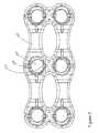 As seen inFIG. 6,fin122 has an angled leadingedge123 and atrailing edge124, leadingedge123 being non-orthogonally connected toarm127. As seen inFIG. 16,fin120 has an angled leadingedge123′ non-orthogonally connected toarm126. Regarding the screw thatinterfaces member125,FIG. 6 shows howtooth137 has angled leading edge136 and curvedtrailing edge135.Fin122 is sized to be received betweenteeth137,137′ oftoothed wheel134.