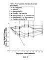 FIG. 6 is a graph of the body weights of the animals in each group versus time. Data points represent man values, error bars represent standard error of the means and lines are connecting lines between mean values. * indicates P<0.05 compared to the No Treatment group on that given day.