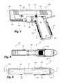 Several biasing devices are described with regard topistol100 includingsprings188,200,254,282,328 and346 andplunger306. “Biasing” device is used to describe these types of elements in the claims below. “Biasing” device should be understood as incorporating any type of device that stores and releases mechanical energy, not just the mechanical springs illustrated in the figures.