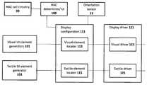 In some embodiments, the display configurator111 comprises atactile element locator115. Thetactile element locator115 can be configured in some embodiments to receive the tactile elements and based on the orientation information determine the location of the tactile location elements on the display.