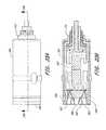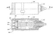 Another embodiment, shown inFIGS. 23A and 23B, comprises two sets of adherent strain gauges, aninner set304 near the center of the diaphragm where tangential strain is relatively high and anouter set303 near the periphery of the diaphragm where radial strain is also high but of opposite polarity. Electrically, this arrangement is connected to form a Wheatstone bridge circuit. In order to make the overall transducer relatively small, compromises are made on the supporting structure of the diaphragm. Because the supporting structure is not absolutely rigid, forces applied to the side of the structure will result in a small deformation of the diaphragm. The radial strain gauges are the most affected by this “side load.” Prior art approaches to strain gauge mounting provide for the two radial strain gauges to be placed 180° apart. Side forces in line with these gauges would result in maximum signal change on the bridge since the effects are additive. Also side forces 90° from the radial strain gauge axis would produce another maximum but opposite polarity signal change on the bridge. In one embodiment of this invention, the radial strain gauges are oriented 90° from each other rather than the standard 180° orientation. This results in a partial canceling of the side load force effects, as the signal effects are substantially subtractive rather than additive. In this embodiment, the orthogonal arrangement of the radial strain gauges has been experimentally measured to reduce side loading effects on pressure readings by about two-thirds compared to when the radial gauges are affixed about 180 degrees apart.