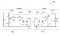 The transmitterresonant circuit1008 comprises a resonant capacitor Crt. Crt can be implemented as a capacitor having variable capacitance. For example, Crt may be implemented as a capacitor and switch network as described in U.S. patent application Ser. No. 14/177,049. The capacitance of Crt can be modulated by controlling the gate signals applied to the switches in the capacitor and switch networks according to different system operating conditions. The arrangement of the capacitors and switches in the capacitor and switch networks is designed such that the capacitor and switch networks are capable of generating a large number of capacitance variation steps, which offer an almost continuous variation of the capacitance of Crt in a wide range.