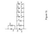 FIG. 15 illustrates a schematic diagram of a variable capacitance network in accordance with various embodiments of the present disclosure;