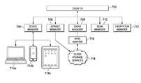 The device manager704 (similar to the listener described herein) is configured to gather metadata identifying files stored on the local storage device of a user device such as devices714a-c. Thedevice manager704 may also be configured to gather updates to the metadata. The device manager may also gather user preferences associated with capabilities of the user device and any updates thereto.