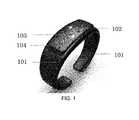 FIG. 1 is a first example of a wearable key fob. Awrist band101 includes akey fob102. Thekey fob102 has aface103 and aconnector104. Theconnector104 attached thekey fob102 to thebracelet101 to enable a user to wear thekey fob102. Thekey fob102 is detachable from thewrist band101 at theconnector104. Thekey fob102 securely fits back into thewrist band101 after it is removed.
