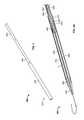 the angle between the longitudinal axis of the proximal portion of the sheath and the longitudinal axis of the distal portion of the sheath may be between about 35° and about 55°; and/or