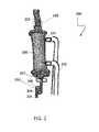FIG. 2 is a schematic illustration of a portion of anextracorporeal blood circuit200 with adeaeration device204 integrated with ablood chamber210 configured as an S-Bend according to an embodiment of the system described herein. Theextracorporeal circuit200 comprises anarterial bloodline203, adialyzer205, and avenous bloodline206. Attached to theextracorporeal circuit200 are afresh dialysate line201 and a spentdialysate line202. In an embodiment, thedeaeration device204 may connect to thedialyzer205 andvenous blood tubing206 through use of luer-lock connections. It should be appreciated that while the system ofFIG. 2 demonstrates an example embodiment of the system described herein, and that other possible configurations of the system described herein may be equally or even more suitable, depending on specific requirements. For example, a deaeration device (like thedeaeration device204 and/or a different embodiment of the deaeration device204) may be connected betweenarterial bloodline203 anddialyzer205 instead of, or in addition to, being connected between thedialyzer205 and thevenous bloodline206. This is shown schematically in the figure aselement220.