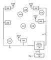 Thenetworks150 may interconnect some or all of the sensors120, thesignal analysis system130, and theconsole140. Portions of thenetworks150 connecting the sensors may be configured to transmit radio frequency signals and/or digital information. Radio frequency signals may be communicated as collected, down-converted using an intermediate frequency oscillator, or down-converted to baseband. Communication links associated with thenetworks150 may use various physical media such as twisted pair, coaxial cable, or fiber optic cables. The signals transferred on the physical media may be analog RF, radio over fiber, digital, packetized, switched, connection-oriented, or any combination thereof. According to various embodiments, the communication links associated with thenetworks150 may use wireless frequencies or transmission paths that are selected to avoid interference from or to the electromagnetic environment in use by the wireless devices110.