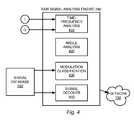 FIG. 4 is a block diagram depicting a rawsignal analysis engine240 in accordance with one or more embodiments presented herein. The rawsignal analysis engine240 may receive digital I and Q signal samples for processing. Processing modules of the rawsignal analysis engine240 may include, among other examples, time-frequency analysis410,angle analysis420,modulation classification430, andsignal decoding440. The processing modules, particularly themodulation classification module430, and thesignal decoding module440, may leverage asignal database450. Outputs from the rawsignal analysis engine240 may be communicated onto thenetwork150.