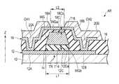 The low-resistance wiring20A is located above thesecond semiconductor layer18 and brought into contact with thethird region18A. In this embodiment, the low-resistance wiring20A is formed on the second insulatingfilm16 and thesecond semiconductor layer18. One end of the low-resistance wiring20A opposes the upper surface WGa and also the boundary between thethird region18A and thesecond channel region18C. The low-resistance wiring20B is located above thesecond semiconductor layer18 and brought into contact with thefourth region18B. In this embodiment, one end of the low-resistance wiring20B opposes the upper surface WGa and also the boundary between thefourth region18B and thesecond channel region18C. That is, a second channel length L2 of thesecond channel region18C is equivalent to the distance from the end of the low-resistance wiring20A to the opposing end of the low-resistance wiring20B.