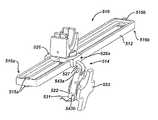 With themodular clamping mechanism514 in an open or unattached configuration, as shown inFIG. 14, themodular clamping mechanism514 is free to be attached to theframe512 or removed from theframe512. To attach themodular clamping mechanism514 to theframe512, themodular clamping mechanism514 can be moved to a closed or attached configuration, as shown inFIGS. 12, 13, and 16, by pivoting thehinge527 to bring thelatch531 into contact with thedepression529 into which thelatch531 can snap, click, hook, magnetically affix, or otherwise releasably and replaceably attach. In another embodiment, thelatch531 can be configured to fixedly attach to thecarriage526 such that themodular clamping mechanism514 is not releasable from theframe512 once themodular clamping mechanism514 is in the closed configuration positioned around theframe512. A distal side of thecarriage526 can include opposed channels orgrooves545, generally referred to as “grooves,” configured to engageopposed sidewalls518a,518bof theframe512. Aligned theopposed grooves545 with theopposed sidewalls518a,518bcan help ensure proper alignment of themodular clamping mechanism514 relative to theframe512. As a default, themodular clamping mechanism514 can be attached to theframe512 in the unsecured configuration, e.g., configured to move relative to theframe512.