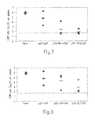 FIG. 54 shows the packaging of oligodeoxynucleotides into ZnSO4-treated VLPs and analysis of them by agarose gelelectrophoresis. Qβ VLPs which had been treated with 2.5 mM zinc sulfate (+ZnSO4) were dialysed against 4 mM HEPES, pH 7.4, 30 mM NaCl and incubated for 3 hrs at 37° C. with an excess of oligodeoxynucleotides (due to the dialysis the concentration of ZnSO4was decreased by an order of 106, therefore its indicated only in parenthesis) After this incubation in presence of oligodeoxynucleotides, equal amounts of the indicated samples (5 μg protein) were mixed with loading dye and loaded onto a 0.8% agarose gel. After the run the gel was stained with ethidium bromide. Note that adding of oligodeoxynucleotides to ZnSO4-treated Qβ VLPs could restore the electrophoretical behaviour of the so treated capsids when compared to untreated Qβ capsids which had been purified fromE. coli.
