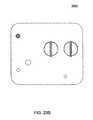 Referring next toFIGS. 24C and 24D, the air side, or side facing the bottom plate (not shown, shown inFIGS. 25A-25E) of themidplate31000 is shown according to the exemplary embodiment. The air side of the valve holes3802,3808,3814,3816,3822,3836,3838,3840,3842,3844,3856 correspond to the holes in the fluid side of the midplate31000 (shown inFIGS. 24A and 24B). As seen inFIGS. 26C and 26D,membranes31220 complete pod pumps3820,3828 whilemembranes31222complete valves3802,3808,3814,3816,3822,3836,38338,3840,3842,3844,3856. Thevalves38023808,3814,3816,3822,3836,3838,3840,3842,3844,3856 are actuated pneumatically, and as the membrane is pulled away from the holes, liquid/fluid is allowed to flow. As the membrane is pushed toward the holes, fluid flow is inhibited. The fluid flow is directed by the opening and closing of thevalves3802,3808,3814,3816,3822,3836,3838,3840,3842,3844,3856. The exemplary embodiment of the valve is a volcano valve, shown in described above with respect toFIGS. 2A and 2B. One embodiment of thevalve membrane31222 is shown inFIG. 2E, alternate embodiments are shown inFIGS. 2F-2G.