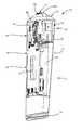 FIG. 17 illustrates that thecartridge36 being improperly inserted into thecartridge housing192. As a consequence, theprimary engagement rail194awill contact theblocking component200, which prevents full insertion into thecartridge housing192. Additionally, the lockingkey mechanism202 will not receive the marker from thecartridge36 to verify that thecartridge36 is properly inserted. This is illustrated inFIG. 18, where theprimary engagement rail194acontacts theblocking component200.