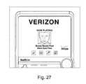 FIG. 27 is an illustrative view of visual components on a jukebox device being color matched and synchronized in accordance with certain exemplary embodiments. In theFIG. 27 example, an advertisement for Verizon is being shown. In that regard, the LED display says Verizon, and the Verizon logo appears in the main display area. In addition, the LED display text is red, as is a portion of the main display. The wall wash also is red, and the rim light segment is white for contrast. The red Verizon theme may be applied during song play, as shown inFIG. 27 in which the Black Eyed Peas song “Boom Boom Pow” is being played. In certain exemplary embodiments, a custom message may be designated for the song, e.g., to display “BOOM BOOM BOOM!!!” in the LED display when the artists sing the same. In such a case, precedence may be given to the song-specific text. However, the red Verizon theme may be maintained, such that the text is displayed in that color pattern.