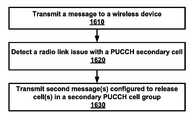 A radio link issue with the PUCCH secondary cell may be detected while one or more other cells in the secondary PUCCH group have acceptable radio link quality at1720. According to an embodiment, the detection of the radio link issue may employ detecting a loss of PUCCH secondary cell signals. The detection of the radio link issue may employ detecting a loss of synchronization with the PUCCH secondary cell signals. The detection of the radio link issue may employ measuring high error rates on the PUCCH secondary cell. According to an embodiment, the detection of the radio link issue may employ measuring high interference on the PUCCH secondary cell. The detection of the radio link issue may employ receiving a channel quality indicator (CQI) feedback indicating poor signal quality on the PUCCH secondary cell. The detection of the radio link issue may employ receiving measurement reports indicating poor signal quality on the PUCCH secondary cell. According to an embodiment, the detection of the radio link issue may occur when the base station receives a third message from the wireless device.