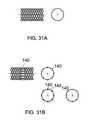 FIG. 31A is a drawing of a stent that can be used as a docking or anchoring element. The stent can be braided from round or flat wire. As depicted inFIG. 31A, the stent is in the expanded state. The mesh of the stent may be left open or it may be covered with a suitable material, as previously disclosed in this application. The stent may be balloon expanded or self expanding. The mesh of the stent may be left open or it may be covered with a suitable material previously disclosed in this application.FIG. 31B is a drawing of a stent that can be used as a docking element. The stent can be braided from round or flat wire. As depicted inFIG. 31B, the stent is in the expanded state. The stent may includemagnets140 attached to the stent. The magnets may be on the inside diameter, outside diameter, both the inside or outside diameter or incorporated into the wall. The magnets can be used as a means to attach a tubular implant such as111. The mesh of the stent may be left open or it may be covered with a suitable material previously disclosed in this application. The stent may be balloon expanded or self expanding. The mesh of the stent may be left open or it may be covered with a suitable material, as previously disclosed in this application.