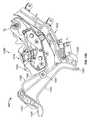 FIG. 13D is a side view of the document processing device ofFIG. 2A with the housing and other selected components removed to illustrate the latch mechanism and a movable segment of the transport mechanism in an unlocked, intermediate position according to some embodiments;