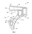 Further, thelower extension108 of thebody102 may define aslot128 between theprotrusion110 and arib130 extending from one or both of thelower extension108 and theconnector portion112 of thebody102. In some aspects, theslot128 andrib130 are provided to aid in appropriately aligning theaccessory100 with the fluid transfer device. For example, and as described herein, theprotrusion110 may be aligned within a corresponding component of a fluid transfer device (e.g.,slot212,FIG. 8).