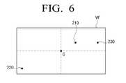 Referring toFIG. 6, theimage sensor123 performs functions of a viewfinder (VF) of a camera. The controllingunit140 calculates the Euclidean distance between the center of the LED of thedevices210,220,230 displayed on the VF and the center C of the VF. InFIG. 6, thedevice210 has the shortest Euclidean distance. The controllingunit210 determines thedevice210 to be a pointed device, and controls theimage sensor123 to generate identification information for thepointed device210.