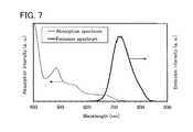FIG. 7 shows an ultraviolet-visible absorption spectrum and an emission spectrum of the organometallic iridium complex represented by Structural Formula (100).