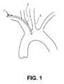 In one application, the filter systems described herein are used to protect the cerebral vasculature against embolisms and other foreign bodies entering the bloodstream during a cardiac valve replacement or repair procedure. To protect both the right common carotid artery and the left common carotid artery during such procedures, the system described herein enters the aorta from the brachiocephalic artery. Once in the aortic space, there is a need to immediately navigate a 180 degree turn into the left common carotid artery. In gaining entry into the aorta from the brachiocephalic artery, use of priorart catheter devices1 will tend to hug the outer edge of thevessel2, as shown inFIG. 1. To then gain access to the left common carotid artery3 with such prior art devices can be a difficult maneuver due to the close proximity of the two vessels which may parallel one another, often within 1 cm of separation, as shown in, for example,FIGS. 1-5. This sharp turn requires a very small radius and may tend to kink the catheter reducing or eliminating a through lumen to advance accessories such as guidewires, filters, stents, and other interventional tools. The catheter-based filter systems described herein can traverse this rather abrupt essentially 180 degree turn to thereby deploy filters to protect both the right and left common carotid arteries.