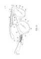 Frame32 additionally includes a left arm ortemple piece46 and a second arm ortemple piece47 coupled to the respective left andright end portions41,42 of thefront piece33 by any suitable means such as a hinge (not shown), so as to be coupled to thefront piece33, or rigidly or fixably secured to the front piece so as to be integral with thefront piece33. Each of thetemple pieces46 and47 can include afirst portion51 that is coupled to therespective end portion41 or42 of thefront piece33 and any suitablesecond portion52, such as a curved or arcuate piece, for coupling to the ear of the user. In one embodiment, thefront piece33 can be formed from a single piece of material, so as to have a unitary or integral construction.