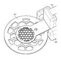 In some exemplary embodiments of the systems shown herein (e.g., those inFIGS. 4-11D), the moderate body is stainless steel. In some embodiments it can be about 0.1 mm thick. As shown in the figures, the plurality of openings in the moderate body have general hexagon configurations. In some exemplary embodiments the dimension from a first side of the hexagon to a second side that is parallel to the first side (i.e., double the hexagon's apothem) of at least a substantial number of the hexagon shapes is about 0.35 mm. In some embodiments that dimension could be between about 0.02 mm to about 0.12 mm. The distance between hexagons (i.e., the distance from a first side of a first hexagon to a first side of a second hexagon, wherein the sides are parallel to one another and the hexagons are directly adjacent to one another) is about 0.05 mm, although this distance could be between about 0.01 mm and about 0.25 mm. The diameter of the moderate body can be about 3 mm, but in some embodiments it is between about 0.25 mm and about 13 mm. The above numerical limitations are merely exemplary and not intended to be limiting.