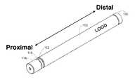 FIG. 95 illustrates an adhesive strip type of packaging embodiment.FIG. 95 illustrates the general configuration of an adhesive strip or substantially flat member or similar type of packaging. The adhesive strip or substantially flat member or similar could be comprised of various materials such as plastic, heavy paper stock, cardboard, or similar. The material should be of sufficient rigidity to prevent the packaging from readily folding, crumpling, collapsing, or similar. The material should be of sufficient strength to prevent being easily, or readily torn, ripped, or similar. The material should also be wholly or partially resistance to moisture such that that packaging does not lose shape, structure, form or similar when exposed to moisture such as to prevent the packaging material from being degraded if exposed to environmental moisture or placed in the mouth of a child or similar to a degree to which the packaging would present a choking hazard. In this embodiment the packaging would be folded along the midline such as to contain the cartridge in which the packaging have one of the major surface being covered with an adhesive. The adhesive should be of sufficient strength as to require some degree of force readily applied by an adult but more difficult to be applied by a child to separate the adhered surfaces to facilitate the removal of the cartridge or cartridge assembly or upper removable assembly for use in the vaporizer. The major surface of the packaging having an adhesive surface is embodied as having the end portions along the length as not having an adhesive surface such to provide an area of purchase for the user to engage the packaging component to separate the adhered surfaces to remove the cartridge or cartridge assembly or upper removable assembly for use in the device. The engagement of the end portions to pull apart or otherwise separate the adhered surfaces should require some degree of dexterity readily performed by an adult and more difficult to perform for a small child. The major surface of the packaging that is not wholly, partially, substantially, or similarly covered with an adhesive may provide a surface where instruction, warnings, information, logo, or similar may be printed, embossed, molded, etched, or similar as a means of conveying the information to the user. Such information may include a warning relating to how the cartridge or cartridge assembly or upper removable assembly should be kept in the packaging until used as a means to reduce the risk of the cartridge or cartridge assembly or upper removable assembly being a potential choking hazard. The over length of the packaging is such that when the cartridge or cartridge assembly or upper removable assembly is held, positioned, made captive, contained or similar the length in one or more dimensions of the packaged product is greater than 2.25 inches as to reduce the hazard of choking on the package product.