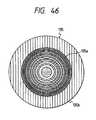 In cases where thelight source52 is formed of a semiconductor laser, a far field pattern of the incident light L3 incident on thehologram lens142 is distributed in the Gaussian distribution as shown inFIG. 13A, and a cross-sectional beam profile of the incident light L3 distributed in the Gaussian distribution is in an elliptic shape. That is, a beam divergent angle (or a full angle at half maximum) of the incident light L3 in a perpendicular direction is larger than that in a horizontal direction. In this embodiment, the perpendicular direction of the incident light L3 is directed in an X2 direction shown inFIG. 48, and the horizontal direction of the incident light L3 is directed in a Y2 direction shown in FIG.48. In this case, because a transmission efficiency of theregions142b,142c for the incident light L3 is smaller than that of theregions142d,142e, the intensity of the incident light L3 transmitting through thehologram lens142 without any diffraction is largely reduced in the perpendicular direction as compared with that in the horizontal direction. Therefore, the cross-sectional beam profile of the incident light L3 is corrected to a circular shape in thehologram lens142. That is, the converging spot S1 formed on thefirst information medium23 is corrected to the circular shape. Accordingly, secondary maxima (or side lobes) occurring around the converging spot S1 can be lowered, and a signal-noise ratio of the information signal Snccan be enhanced.