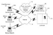 The exemplary embodiments of the present inventions provide the following exemplary elements for use in the methods and systems of the present inventions as illustrated and described below in connection withFIG. 1. Acomputer10A,10B, or10C or other intelligent device such as an integrated-media integrated-applications communications server (referred to herein as the service node or computer) is placed typically on the user's premises or under the user's control (or part of another device found typically on the user's premises or under the user's control) that consolidates the functions and/or services formerly provided by physically separate communications products or systems such as a private branch exchange (PBX), facsimile (fax) server, or remote-access server, and that turns them into software-based functions or services. Additional details regarding an exemplary service node are provided below in connection withFIG. 3.