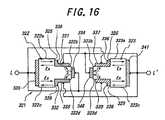 That is to say, thetuning fork tine323 has thestep difference portions326,329, theupper surface portion323a, themedium surface portions323b,323d and thelower surface portion323c, and thestep difference portion326 has electrode336, which is connected toelectrode337, disposed on themedium surface portion323b, while thestep difference portion329 has electrode338, which is connected toelectrode339, disposed on themedium surface portion323d, andelectrodes340,341 are disposed on both sides of thetuning fork tine323. Namely,electrode341 is disposed in opposition toelectrodes336 and338 which are of opposite electrical polarity from saidelectrode341. In full detail, as shown inFIG. 16, the first set ofelectrodes330,331,332,333,340 and341 have the same electrical polarity, while the second set ofelectrodes334,335,336,337,338 and339 are of opposite electrical polarity to the first set of electrodes. Two electrode terminals L-L′ are able to be constructed.