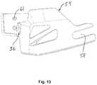 One or more of the following additional features may optionally be included in theadjustable helmet10. As shown inFIGS. 1 and 13, height-adjustable earpieces54 may be included to allow a wearer to adjust the vertical position of theearpieces54 on thehelmet10. Anopening56 in each earpiece is preferably positioned over a raised projection (not visible in the drawings) on an interior surface of thefront shell12. A clamping plate59 or similar structure, which may be a molded foam or similar material, includes threaded receivingelements61 or other receiving elements. The clamping plate59 is positioned behind (i.e., toward the interior of the helmet10) theearpiece54 to provide a clamping force on theearpiece54 when one or more screws or other suitable connectors are threaded into the receivingelements61.