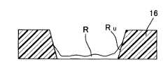 例えば図12に示すように、隔壁16に塗布液(有機樹脂R)が這い上がり、膜厚が不均一となるという問題があった。そこで、この這い上がりUを抑制すべく、隔壁の表面に疎水性加工Rを施し、這い上がりを低減する方法も提案されている(図13)。この場合、這い上がりは低減されるものの、表面張力により、画素領域内でこの有機樹脂層Rの盛り上がりが生じ周縁部に比べて中央部は膜厚が大きくなるという問題があった。