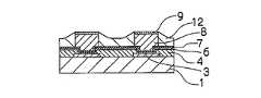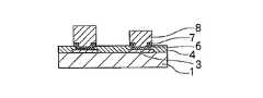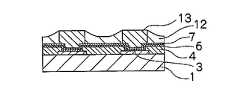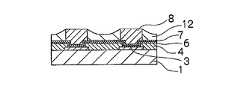 次に、残りのレジスト12を除去し、Auバンプ13の下以外に形成されている密着層6と接着層7とをウェットエッチング法等を用いて除去する。こうして、本実施の形態で用いられる基板2を得ることができる。この基板2は、平坦化されたAuバンプ13を電極部として備える構造である〔図8C〕。Next, the remaining resist 12 is removed, and theadhesion layer 6 and theadhesion layer 7 formed other than under the Au bumps 13 are removed using a wet etching method or the like. Thus, thesubstrate 2 used in this embodiment can be obtained. Thesubstrate 2 has a structure including a flattenedAu bump 13 as an electrode part [FIG. 8C].