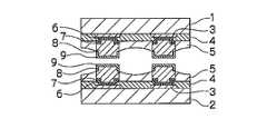 なお、詳しくは、半導体素子1に設けられた電極3の上、及び基板2に設けられた電極3の上には、密着層6と接着層7とがその順で設けられており、Cuバンプ8はその接着層7上に設けられている。また、半導体素子1上及び基板2上の電極3以外の面には、絶縁膜4が設けられている。Specifically, anadhesion layer 6 and anadhesive layer 7 are provided in this order on theelectrode 3 provided on thesemiconductor element 1 and on theelectrode 3 provided on thesubstrate 2. 8 is provided on theadhesive layer 7. An insulatingfilm 4 is provided on the surface of thesemiconductor element 1 and thesubstrate 2 other than theelectrode 3.