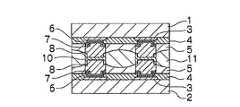 また、この実施の形態ではCuとAuとの固溶体層10を介した接合構造としているが、本発明においては、AuバンプとPtや、AuバンプとPdや、CuバンプとPtや、CuバンプとPdや、CoバンプとPd等のバンプ材と接合材料の組合せであってもよく、それらの組合せにより固溶体層10を形成し、この固溶体層10を介した接合構造としてもよい。こうした固溶体領域の構成材料は全率固溶体型の材料からなるものが好ましい。In this embodiment, the bonding structure is formed through thesolid solution layer 10 of Cu and Au. However, in the present invention, Au bump and Pt, Au bump and Pd, Cu bump and Pt, Cu bump and A combination of a bump material such as Pd or Co bump and Pd and a bonding material may be used, and thesolid solution layer 10 may be formed by a combination thereof, and a bonding structure via thesolid solution layer 10 may be used. The constituent material of such a solid solution region is preferably made of a solid solution type material.