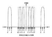 一方、図6(a)~(f)に示すように一つの要素光学系134aのなかで急峻なピークPが形成されない場合には、図8(a)に示すように照度分布が段差等の高周波数成分を持たず、照度分布補正フィルタあるいは可変スリット等の照度分布補正手段によって照度分布の均一化を図ることができる。なお、ピークPの高さが許容される照度分布の範囲であれば、フライアイ反射鏡134に入射する光ビームの照度分布両端をゼロまで低下させなくても足りる。On the other hand, when the steep peak P is not formed in one elementoptical system 134a as shown in FIGS. 6A to 6F, the illuminance distribution has a step or the like as shown in FIG. An illuminance distribution can be made uniform by an illuminance distribution correction means such as an illuminance distribution correction filter or a variable slit without having a high frequency component. If the height of the peak P is within an allowable illuminance distribution range, both ends of the illuminance distribution of the light beam incident on the fly-eye reflector 134 need not be reduced to zero.