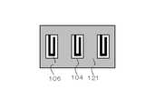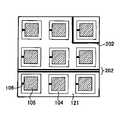 また図20に示すように、配線106の一端119は正方形の第1開口104の角に接続していても良い。本図に示す例において、配線106は第1開口104の角から、第1開口104の辺に対して45°の向きに延伸している。Further, as shown in FIG. 20, oneend 119 of thewiring 106 may be connected to a corner of thefirst opening 104 having a square shape. In the example shown in this drawing, thewiring 106 extends from the corner of thefirst opening 104 in a direction of 45 ° with respect to the side of thefirst opening 104.