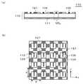 また図22(a)に示すように、第1開口104内に複数の配線106を有していても良い。この場合、同一の第1開口104内に位置する配線106は、互いに長さが異なっているのが好ましい。また図22(b)に示すように、第1開口104内に配線106から分岐している分岐配線109を有していても良い。この場合において、配線106の一端から分岐配線109の開放端までの長さと、配線106の長さは互いに異なっているのが好ましい。なお、図22(a),(b)のいずれの場合においても、単位セル107は同一の構成を有しており、かつ同一の向きを向いているのが好ましい。Further, as shown in FIG. 22A, a plurality ofwirings 106 may be provided in thefirst opening 104. In this case, it is preferable that thewirings 106 located in the samefirst opening 104 have different lengths. Further, as shown in FIG. 22B, abranch wiring 109 branched from thewiring 106 may be provided in thefirst opening 104. In this case, the length from one end of thewiring 106 to the open end of thebranch wiring 109 and the length of thewiring 106 are preferably different from each other. In either case of FIGS. 22A and 22B, theunit cells 107 preferably have the same configuration and face the same direction.
